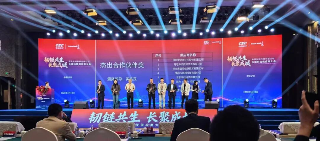 3月13日,长城科技2025年度供应商大会在四川泸州成功举办。本次大会以 “韧链共生,长聚成城” 为主题,汇聚产业链上下游优质伙伴,共话合作共赢,共促产业高质量发展。作为长城科技的重要合作伙伴,泽石科技受邀出席本次盛会,并凭借卓越的产品性能和交付能力,成功获得“杰出合作伙伴奖”。